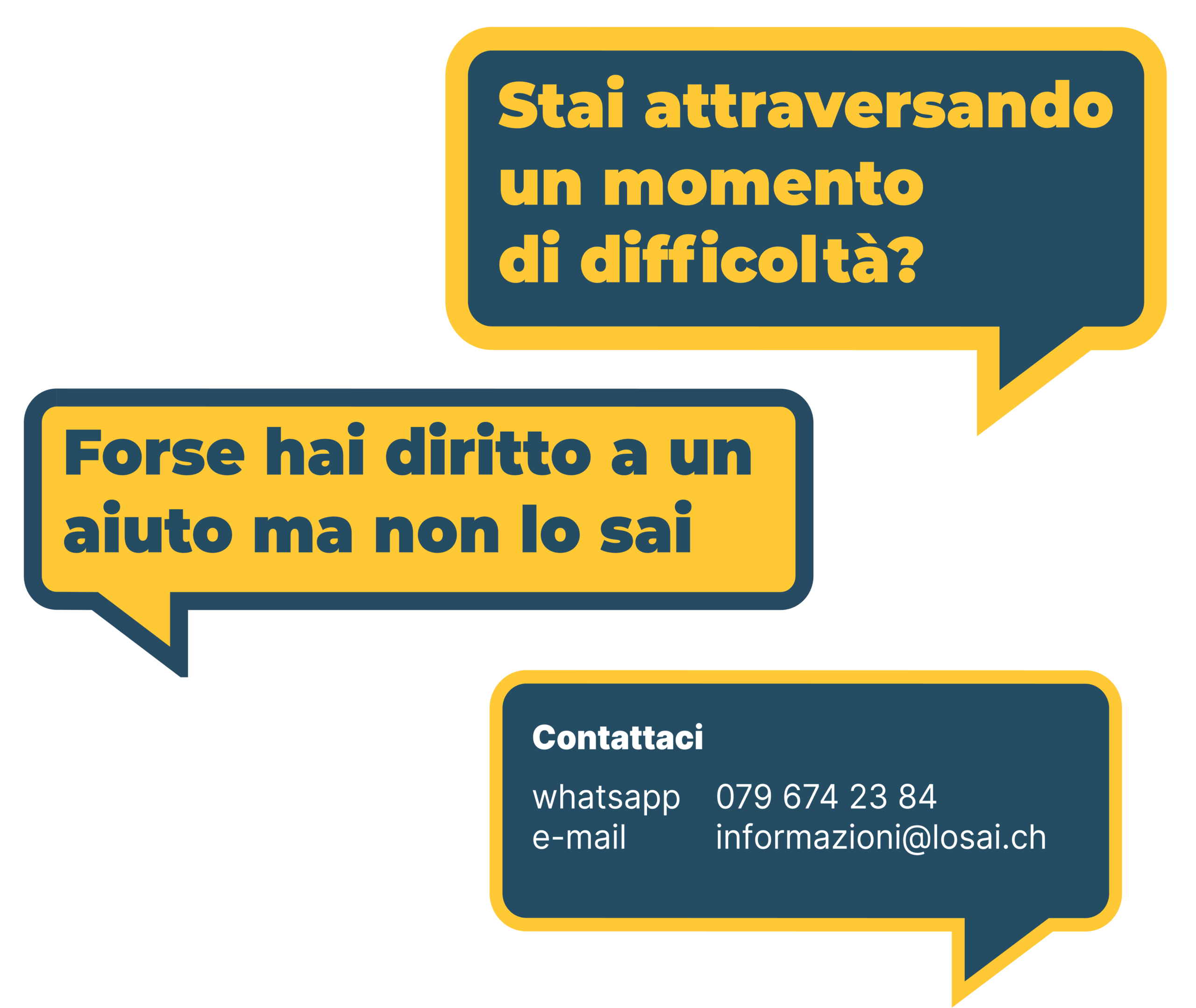 Un/a professionista prenderà contatto con voi per analizzare la vostra situazione finanziaria e valutare eventuali diritti alle prestazioni sociali comunali, cantonale e federali.